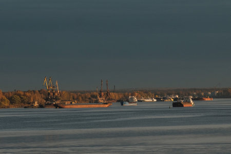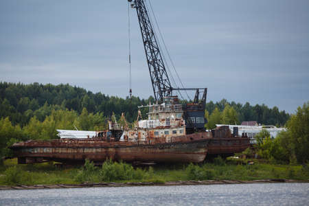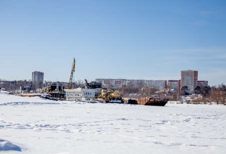 Perm, Russia - March 11.2017: Shipyard in the backwater of the Kama river in winter