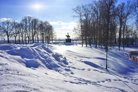 Gold ring of Russia. Monument to Prince Vladimir. Russia, the city of Vladimir, the winter of 2019.