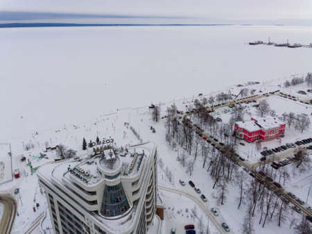 Aerial view of the city of Nizhny Novgorod in winter, Russia