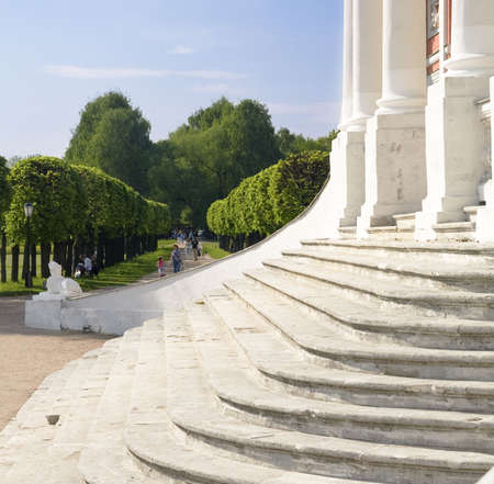 Moscow Oblast, Russia - August 26, 2016: The path from the Grand Palace to the Park of Arkhangelskoye estate. The object of the cultural heritage of the Russian Federation 5010216000. Moscow Oblast, Russia.