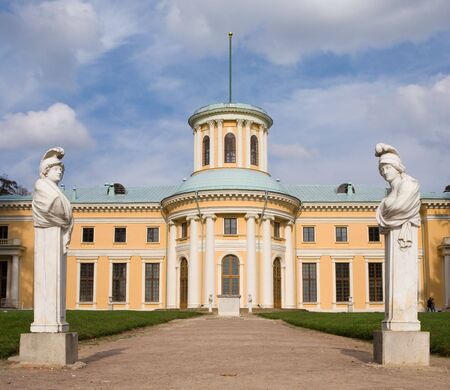 Moscow, Russia - August 8, 2020: Part of the architectural ensemble of the historical museum-estate Kuskovo. Fine example of the 18th century architecture and park landscaping