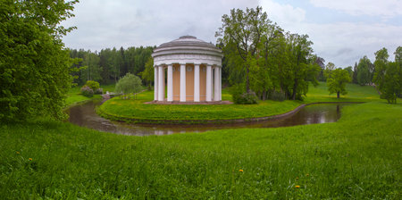Panoramic View of the Temple of Friendship in Pavlovsk Park on a Rainy Summer Day St. Petersburg, Russia
