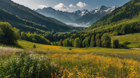 Beautiful alpine meadow with wildflowers in summer.