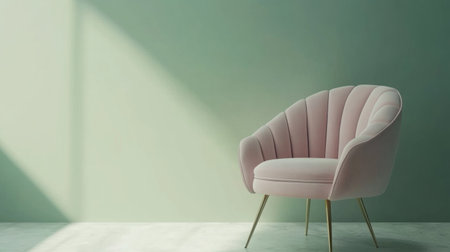 3D rendering of an empty room with a pastel pink chair and copy space on a light green wall background. Minimalist home interior design concept for a living area or office. --chaos 30 --ar 16:9 --v 6.1 Job ID: 19a17005-73e0-4d50-9094-4d7d77438956