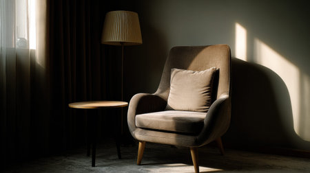 Elegant Armchair in a Stylish Interior with Natural Light and Dark Accents