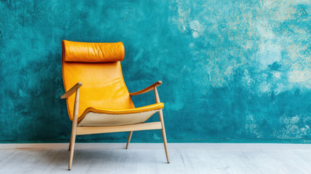 A striking yellow chair set against a vibrant turquoise wall creates a stunning focal point in a minimalist interior. Perfect for modern spaces.