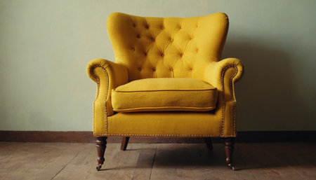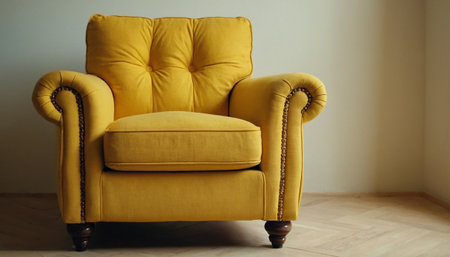 Yellow armchair in the living room, vintage style, soft focus