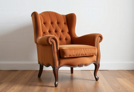 An AI generated illustration of a cozy brown armchair with a cushioned seat and backrest