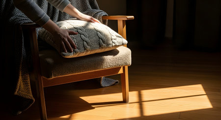 Serene Comfort: An Armchair and Pillow bathed in Natural Light