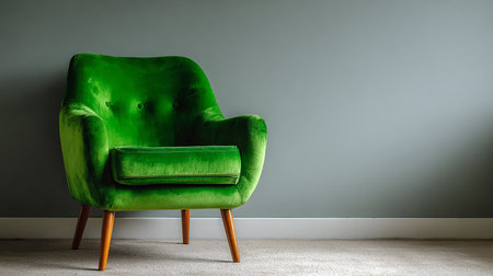 Green armchair in living room interior with copy space on wall.