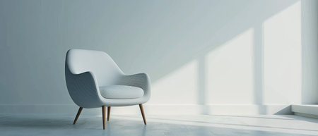 Minimalist room bathed in soft light inspires tranquility. Modern chair adds style. Ideal for showcasing design concepts or creating a peaceful atmosphere.