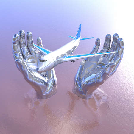 airliner in hands, safety flight in 3d