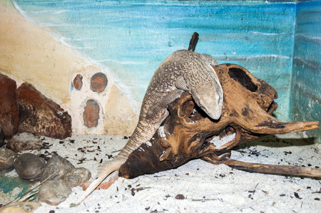 Brazilian armadillo on land in the hinterland of Bahia, excavating the land in search of food and shelter