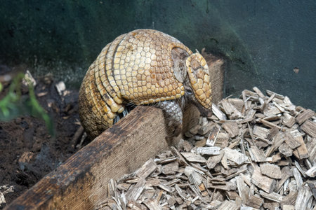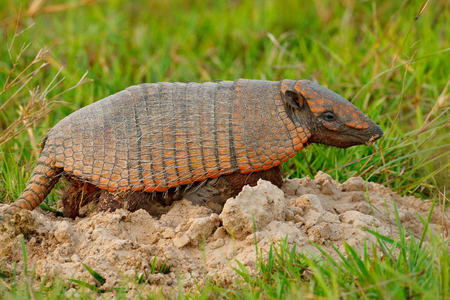 Close up of a Six-banded armadillo (Euphractus sexcinctus) in South Pantanal, Brazil.