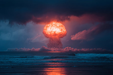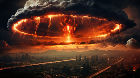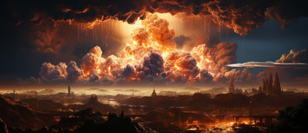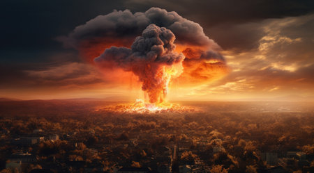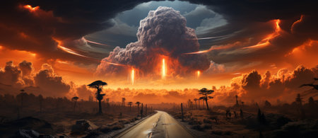 Generative ai on theme of a scary nuclear explosion in outdoor, mushroom cloud of nuclear weapons