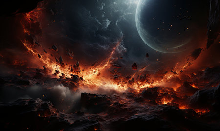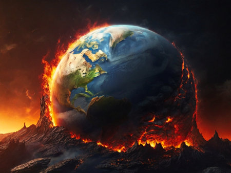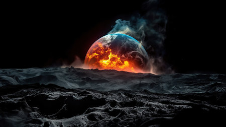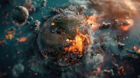 Experience the haunting image of Earth in flames, consumed by burning embers. Ai Generated