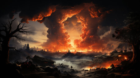 A hauntingly beautiful depiction of the devastating power of nuclear war. Surreal art with Generative AI.