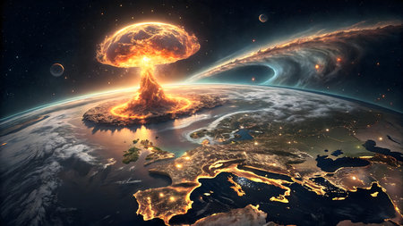 Earth experiencing a global nuclear cataclysm, generated ai image