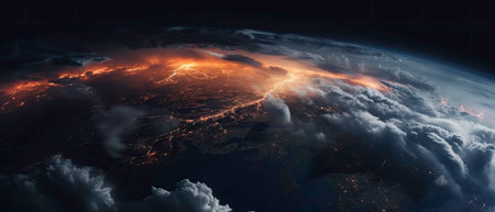 Weather phenomenon of a storm on planet earth captured from space generated by AI
