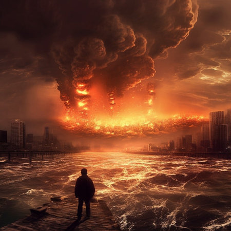 Power of nature and the devastating consequences of a nuclear disaster. The vivid colors and contrasting elements evoke a sense of danger and urgency. The image serves as a powerful reminder of the potential risks and the need for safety in the realm of nuclear energy.