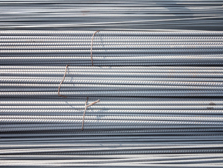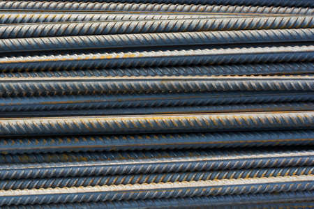 Stack of steel reinforcement bars for construction, background