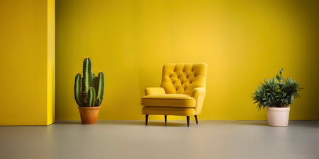 Interior home design. Minimalistic living room decoration. Yellow and green color.