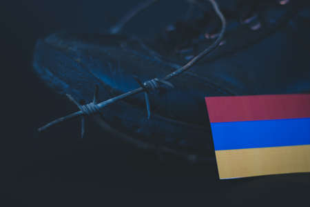 Armenia army, military boots flag Armenia and Barbed Wire, military concept
