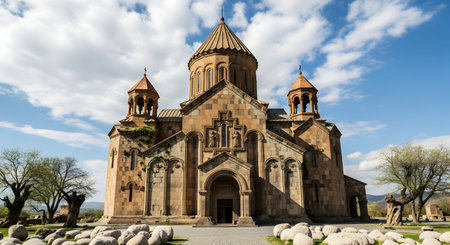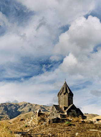 Armenian church with clouds and blue sky.