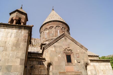 Kotayk, Armenia - 10 April, 2017: The monastery of Geghard is a architectural construction in the Kotayk province of Armenia. listed as a UNESCO World Heritage Site.