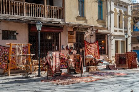 Tbilisi, Georgia 22 January 2020 - Carpets for sale on Tbilisi street. Travel.