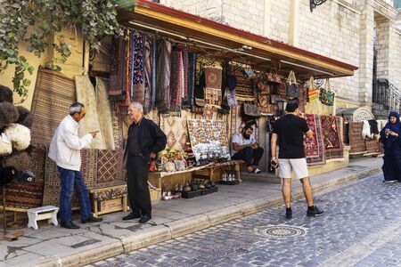 BAKU,AZERBAIJAN - JUNE 20, 2019: Architecture of the Historic part of Baku Icheri Shekher , Azerbaijan. Old town of Baku, is a popular destination among tourists, antique shops in the old town