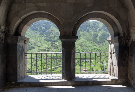 The architectural details of the Tatev Monastery on a hill of Syunik Province, Armenia