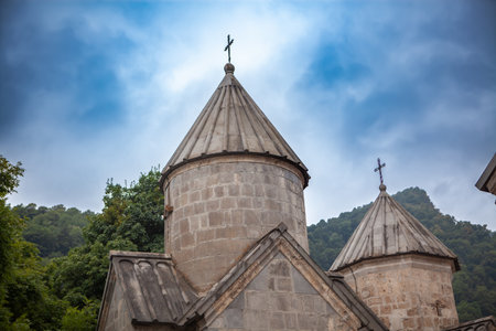 Haghartsin church in Armenia Under abstract sky