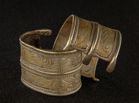 An antique bracelet with engraving isolated on a black background