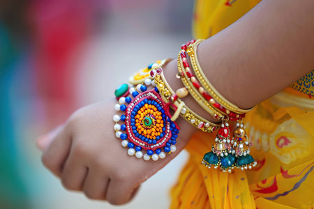 Multi colored wristbands symbolize Indian culture and traditional festivals generated by artificial intelligence
