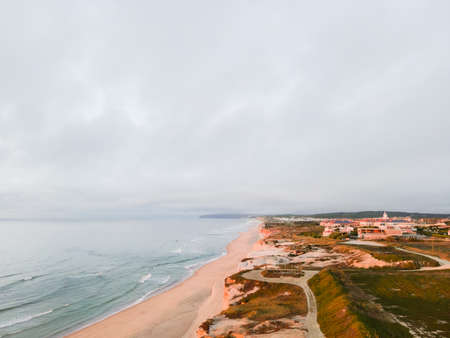 View of the Atlantic ocean and Praia d`El Rey beach at sunset, near Obidos, Portugal