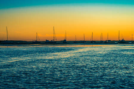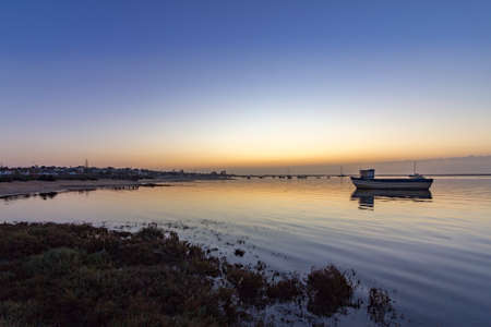 Dawn seascape of Ria Formosa wetlands natural park, shot in Cavacos beach. Algarve. Portugal