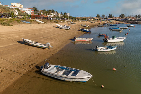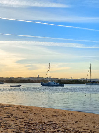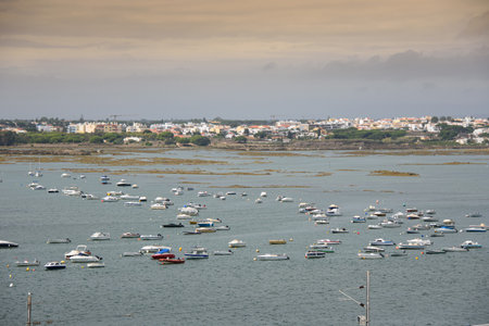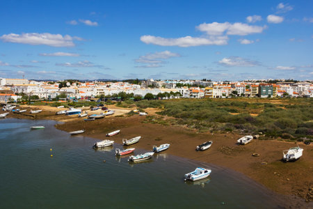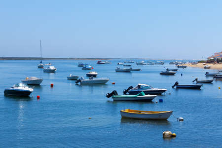 Coastal summer landscape with boats in Alvor, Algarve, Portugal