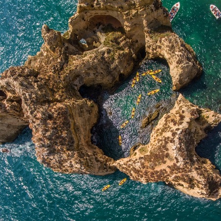 Kayaks on sea water at Ponta da Piedade, Algarve region, Portugal