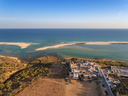 Aerial. Amazing view of the sky, the village Cacela Velha. Tavira Portugal.