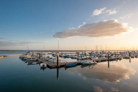 Aerial view of bay with yachts in Alvor, Algarve, Portugal