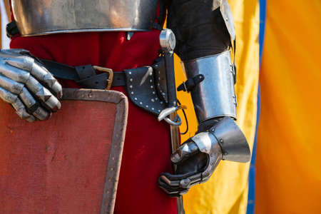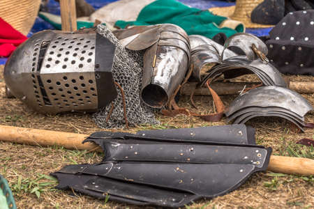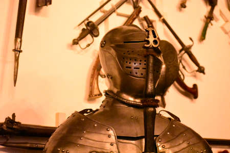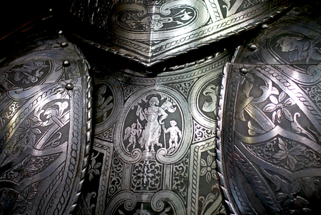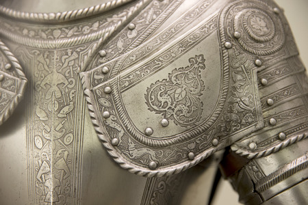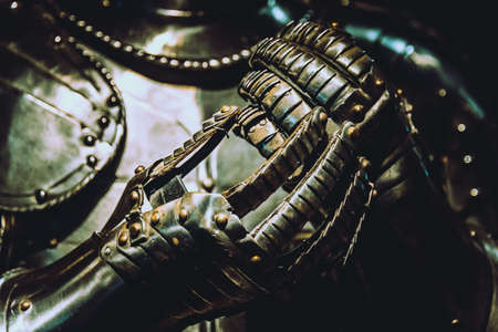 Close up of middle ages armor of the knight. Historic armoring used in combat battles.