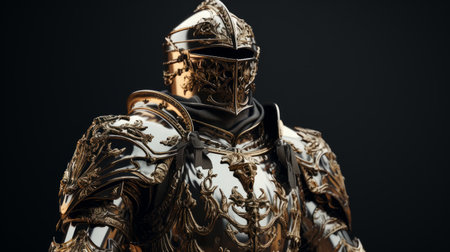 A knight stands proudly in ornate armor, showing meticulous craftsmanship and intricate details.
