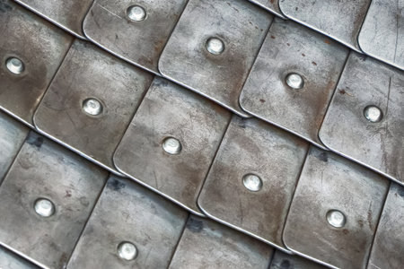 Parts of ancient knight's armor.A medieval concept.Metallic texture.
