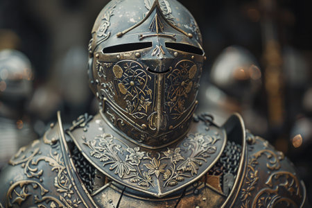 This close-up showcases the detailed and vibrant design of a knight's armor, reflecting historical artistry.