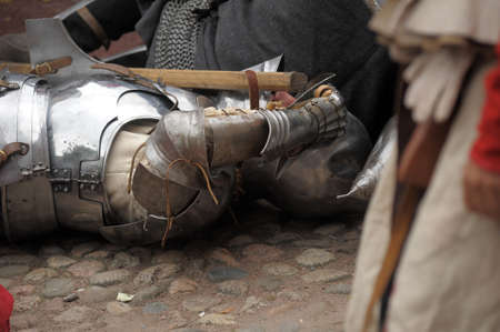 Close up of middle ages armor of the knight. Historic armoring used in combat battles.
