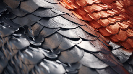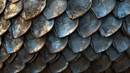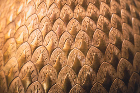 Close-up view reveals a beautiful texture of shimmering golden scales, highlighting the intricate design and craftsmanship. The warm tones create a captivating visual appeal.