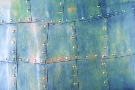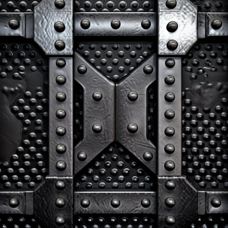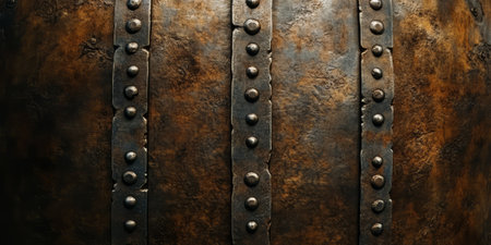 Heavy iron plate background with sharp edges, rivets, and exposed seams. The rugged, raw metal texture exudes a sense of power and durability, making it perfect for machinery, factories, or mechanical concepts.
