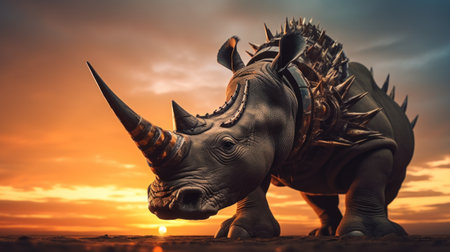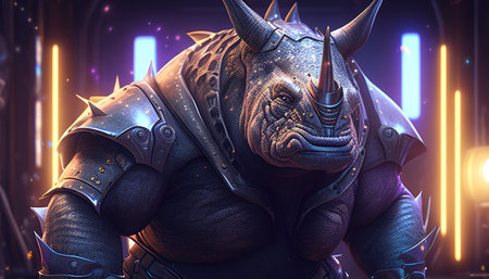 tough rhinoceros bouncer digital art illustration, Generative AI
