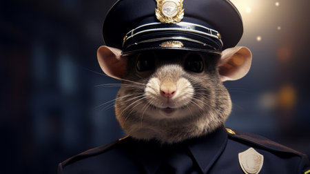 a rat police officer android wallpaper captured in the style of canon eos 5d mark iv. this eye-catching image showcases spirited portraits with a soft-focus technique and cross-processing effects. the photo-realistic techniques used bring out the details, while the addition of rtx on enhances the overall visual appeal. ai generated